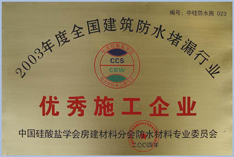 全國建筑防水施工優(yōu)秀企業(yè)