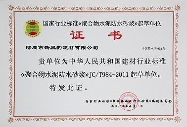 熱烈慶賀我公司成為《聚合物水泥防水砂漿》的起草單位