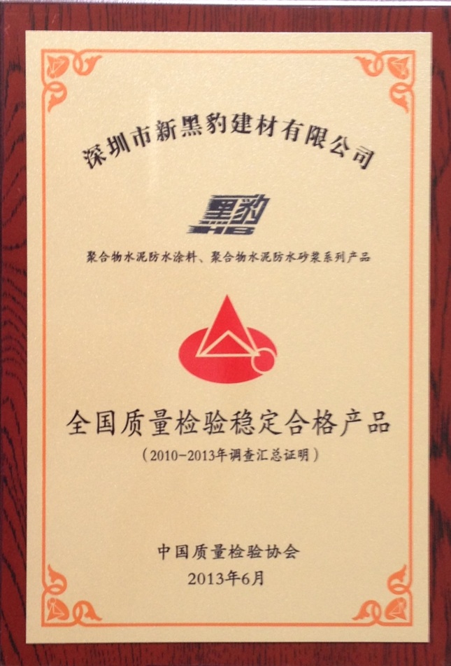 《全國質(zhì)量檢驗穩(wěn)定合格產(chǎn)品》牌