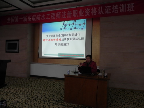 全國(guó)第一屆高級(jí)防水工程師注冊(cè)職業(yè)資格認(rèn)證培訓(xùn)班于3月18~21日在蘇州華僑飯店成功舉辦,來(lái)自全國(guó)各地的80余名防水工作者參加了本次培訓(xùn)班。蘇州中材非礦院防水材料設(shè)計(jì)研究所所長(zhǎng)沈春林教授任主講老師。在3月21日上午,學(xué)員進(jìn)入考場(chǎng),參加了高級(jí)防水工程師注冊(cè)職業(yè)資格認(rèn)證的測(cè)試,測(cè)試結(jié)果將于近期公布。成績(jī)合格者將取得高級(jí)防水工程師注冊(cè)職業(yè)資格認(rèn)證的證書(shū)。我公司員工也參與了這次培訓(xùn)。