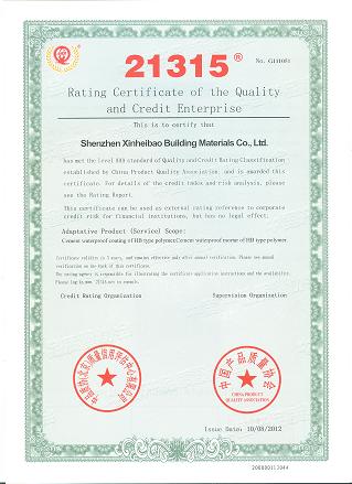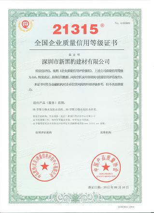 2012年8月,通過中品質(zhì)協(xié)(北京)質(zhì)量信用評(píng)估中心有限公司依照《企業(yè)質(zhì)量信用評(píng)價(jià)規(guī)范》對(duì)我們公司經(jīng)過征信評(píng)估,我們公司的質(zhì)量信用等級(jí)為AAA級(jí),中國產(chǎn)品質(zhì)量協(xié)會(huì)為我們公司頒發(fā)了《全國企業(yè)質(zhì)量信用等級(jí)證書》。