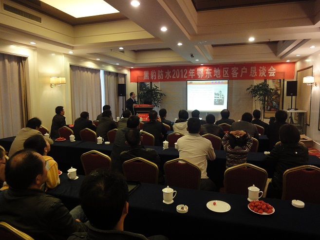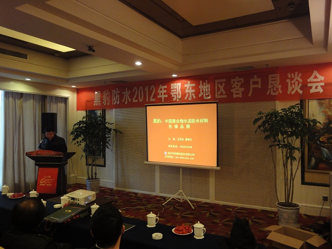2012年11月10日,深圳市新黑豹建材有限公司在湖北黃梅地區(qū)總經(jīng)銷的大力支持下,成功地在黃梅世紀(jì)錦園大酒店召開(kāi)了2012年鄂東地區(qū)客戶懇談會(huì)。會(huì)議由深圳市新黑豹建材有限公司黃梅總經(jīng)銷吳志高總經(jīng)理主持,我公司董事長(zhǎng)王榮柱先生首先介紹了公司目前的發(fā)展情況及公司產(chǎn)品的情況。在會(huì)上,我公司還通過(guò)宣傳短片的形式向參會(huì)的客戶介紹了公司產(chǎn)品的外觀特征及防偽查詢方法。與會(huì)的經(jīng)銷商代表們還觀看了深圳電視臺(tái)關(guān)于工商部門查處假冒“黑豹”牌防水涂料的相關(guān)報(bào)道及《聚合物水泥防水涂料室內(nèi)防水工程防水施工工藝及質(zhì)量控制》相關(guān)短片。
