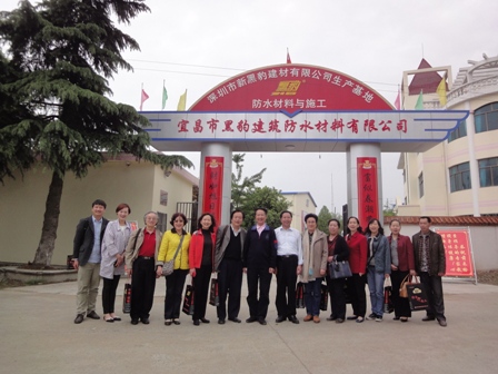 2014年4月26-27日,湖北省工程建設(shè)專家委員會(huì)秘書長(zhǎng)、湖北省土木建筑學(xué)會(huì)秘書長(zhǎng)、高級(jí)工程師黃光碧;中國(guó)建筑總公司專家委員會(huì)主任、中建三局顧問總工;重慶大學(xué)、華工大學(xué)、武漢大學(xué)兼職教授、博導(dǎo)張希黔;中南建筑設(shè)計(jì)股份有限公司一級(jí)注冊(cè)建筑師、高級(jí)工程師俞紅;中興建筑設(shè)計(jì)研究總院有限公司處長(zhǎng)、高級(jí)工程師、一級(jí)注冊(cè)建筑師李上賓;湖北省產(chǎn)品質(zhì)量檢測(cè)站站長(zhǎng)、高級(jí)工程師黃莉;中國(guó)建筑防水協(xié)會(huì)專家委員會(huì)專家、教授級(jí)高工陳安寧;湖北省建筑防水協(xié)會(huì)會(huì)長(zhǎng)桂春芳;秘書長(zhǎng)鄭宏勤一行13人到宜昌市半月鎮(zhèn)考察了深圳市新黑豹建材有限公司生產(chǎn)基地——宜昌市黑豹建筑防水材料有限公司和宜昌兆豐商貿(mào)有限公司天璽龍閣紅酒酒莊建設(shè)施工工地。