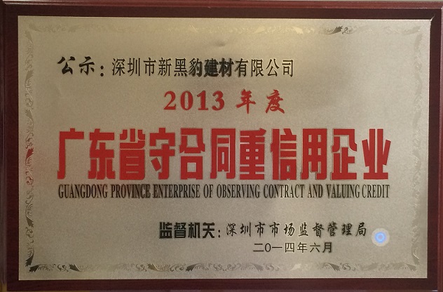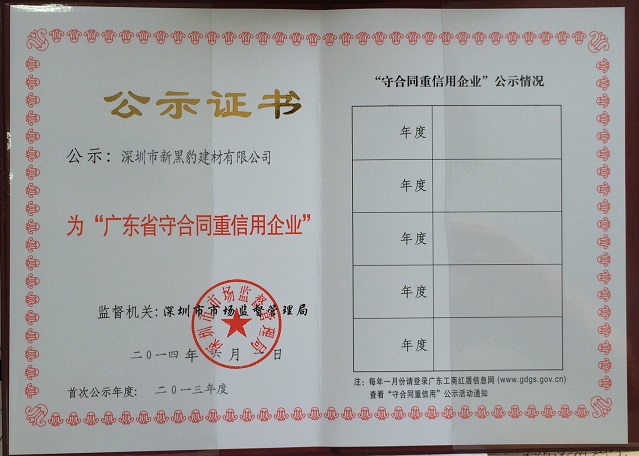 我公司于2014年6月被深圳市市場監(jiān)督管理局評為廣東省守合同重信用企業(yè)。