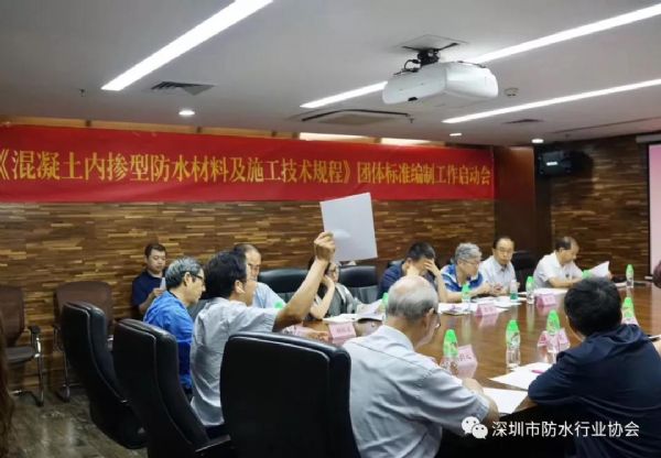 2019年5月16日,在深圳市設計大廈12樓會議室,深圳市防水行業(yè)協(xié)會組織召開了《混凝土內(nèi)摻型自修復防水材料及施工技術規(guī)程》團體標準編制工作的啟動會議。