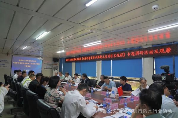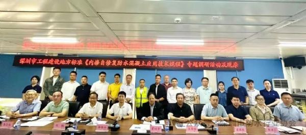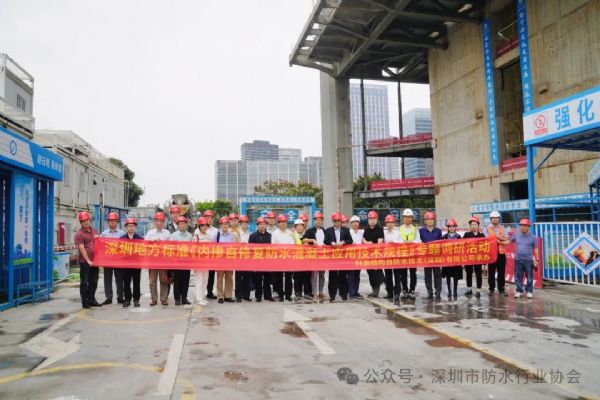 2024年4月11日,深圳市工程建設地方標準《內摻自修復防水混凝土應用技術規(guī)程》專題調研活動在深圳中建科工前海金控大廈項目部舉行。 我公司董事長王榮柱先生同深圳市工程建設地方標準《內摻自修復防水混凝土應用技術規(guī)程》的主要參編單位代表、編制專家等30余人一同觀摩了深圳中建科工前海金控大廈項目地下室側墻防水工程。該項目內摻科洛抗裂劑解決溫度裂縫,根據(jù)現(xiàn)場調研考察情況,已完工部分未出現(xiàn)開裂,受到項目總工、編制專家一致好評。隨后,在項目部會議室召開座談交流會。 標準主編、深圳市防水行業(yè)協(xié)會會長瞿培華主持會議并講話。他逐一介紹了本標準的編制組成員,并提出要求:每位成員應盡責、盡心、盡力,符合深圳市工程建設地方標準制修訂規(guī)矩和要求,緊貼國家標準《建筑與市政工程防水通用規(guī)范》GB 55030-2022與深圳地方標準《建設工程防水技術標準》SJG 19-2023,助力本標準順利編制。 協(xié)會總工程師劉國華介紹了標準編制的最新進展,也期望各參編單位和專家能夠積極配合協(xié)助標準的后續(xù)工作。標準主編、深圳市市政工程質量安全監(jiān)督總站副站長蔣桂山講話。他表示,深圳建筑行業(yè)的高質量發(fā)展需要我們共同出謀劃策,2024年政府工作報告提出,大力推進現(xiàn)代化產業(yè)體系建設,加快發(fā)展新質生產力,在建筑行業(yè)的防水領域,本標準的制定和實施正是積極響應了這一號召,通過新材料、新工藝、新標準來有效提升防水工程的質量。會上與會人員就本標準的編制和防水項目工程展開了積極的技術交流。